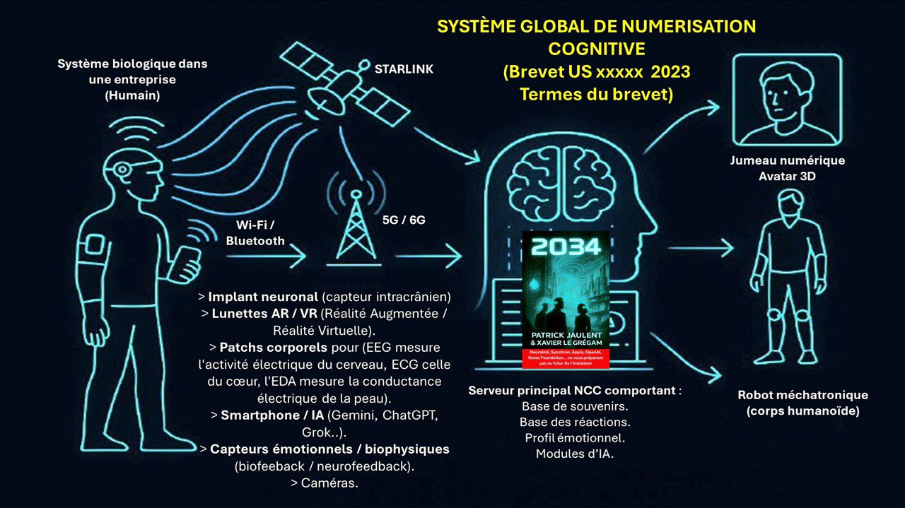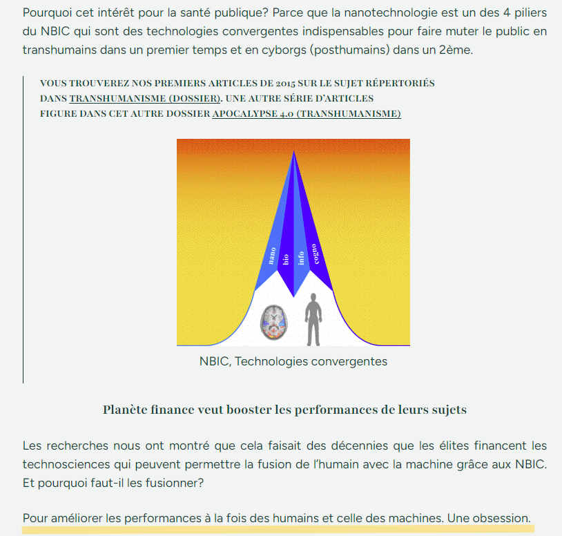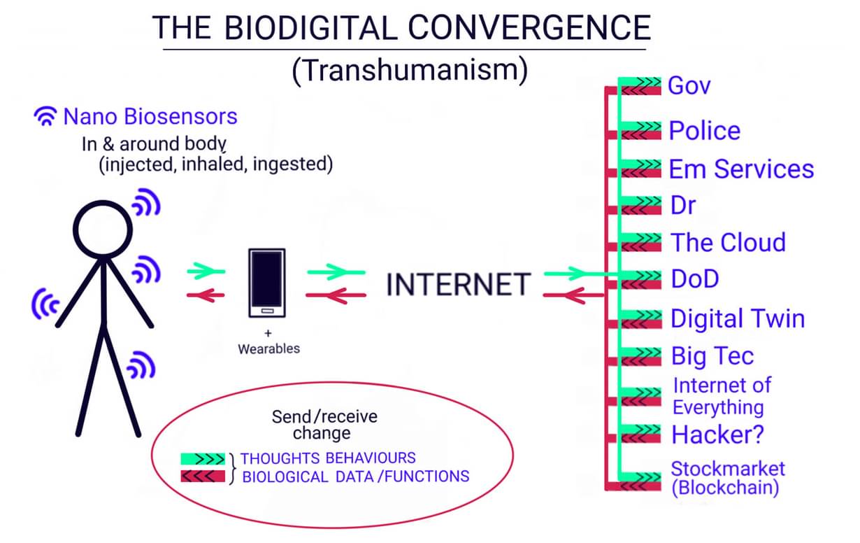 👉 Internet des bio-nano-objets, jumeau numérique, optogénétique, smart cities, monnaies numériques de banques centrales (CBDC), nanotechnologie, interface cerveau-machine, médecine à distance, neurocapitalisme, poussière intelligente, surveillance intra-corporelle, guerres hybrides invisibles, piratage du cerveau, contrôle mental, humain augmenté, transhumanisme, tout y passe !