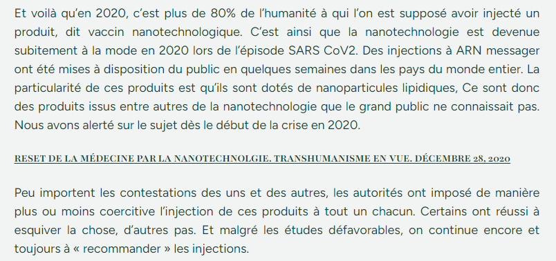 "avec ce type de vaccin à point quantique de graphène, à ARN messager, ce qui est dangereux, c'est qu ils peuvent être activés par des ultra sons, ils peuvent être activés par la lumière et ils peuvent être activés par des champs magnétiques"