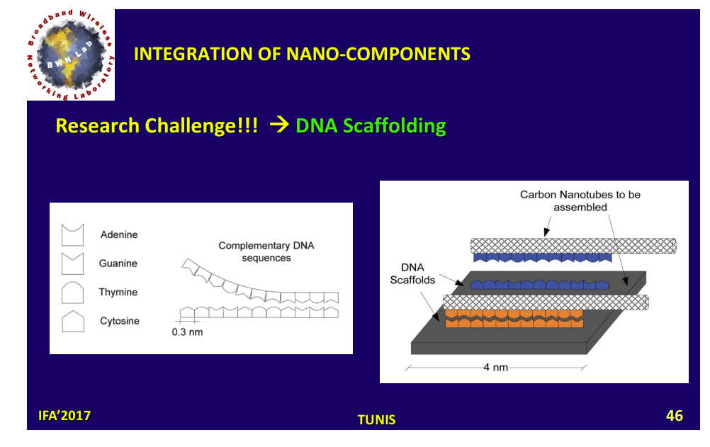 L'utilisation de l'ADN comme "échafaudage" (scaffolding) est une technique de nanotechnologie qui exploite la capacité de l'ADN à s'auto-assembler de manière précise pour créer des structures. Cette structure d'ADN peut ensuite être utilisée pour positionner ou organiser d'autres composants à l'échelle nanométrique, qu'il s'agisse d'autres molécules biologiques ou de nano-dispositifs fabriqués par l'homme. Dans ce contexte, le "DNA Scaffolding" est présenté comme un défi technique à relever pour l'assemblage et l'intégration de ces nano-composants.
