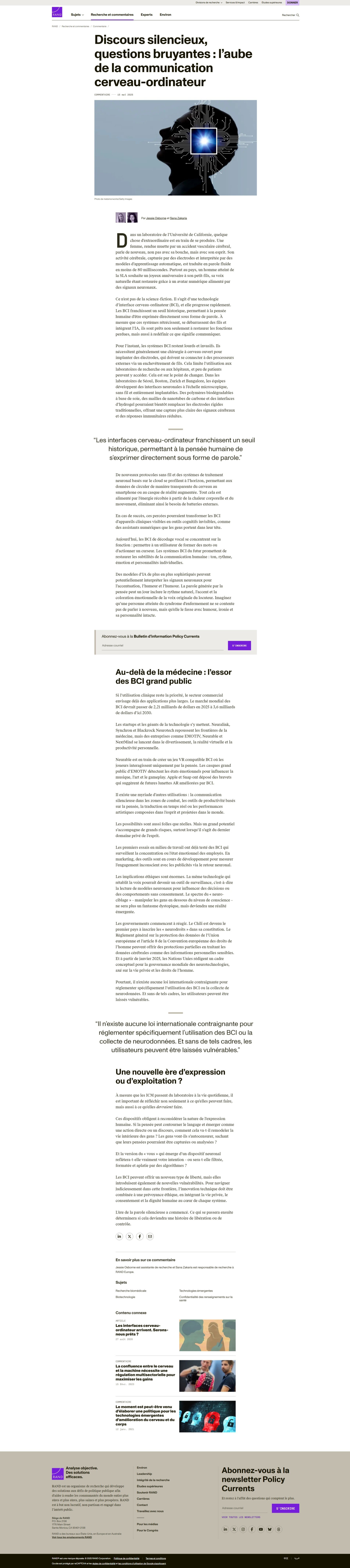 Discours silencieux, questions bruyantes : l’aube de la communication cerveau-ordinateur | RAND
