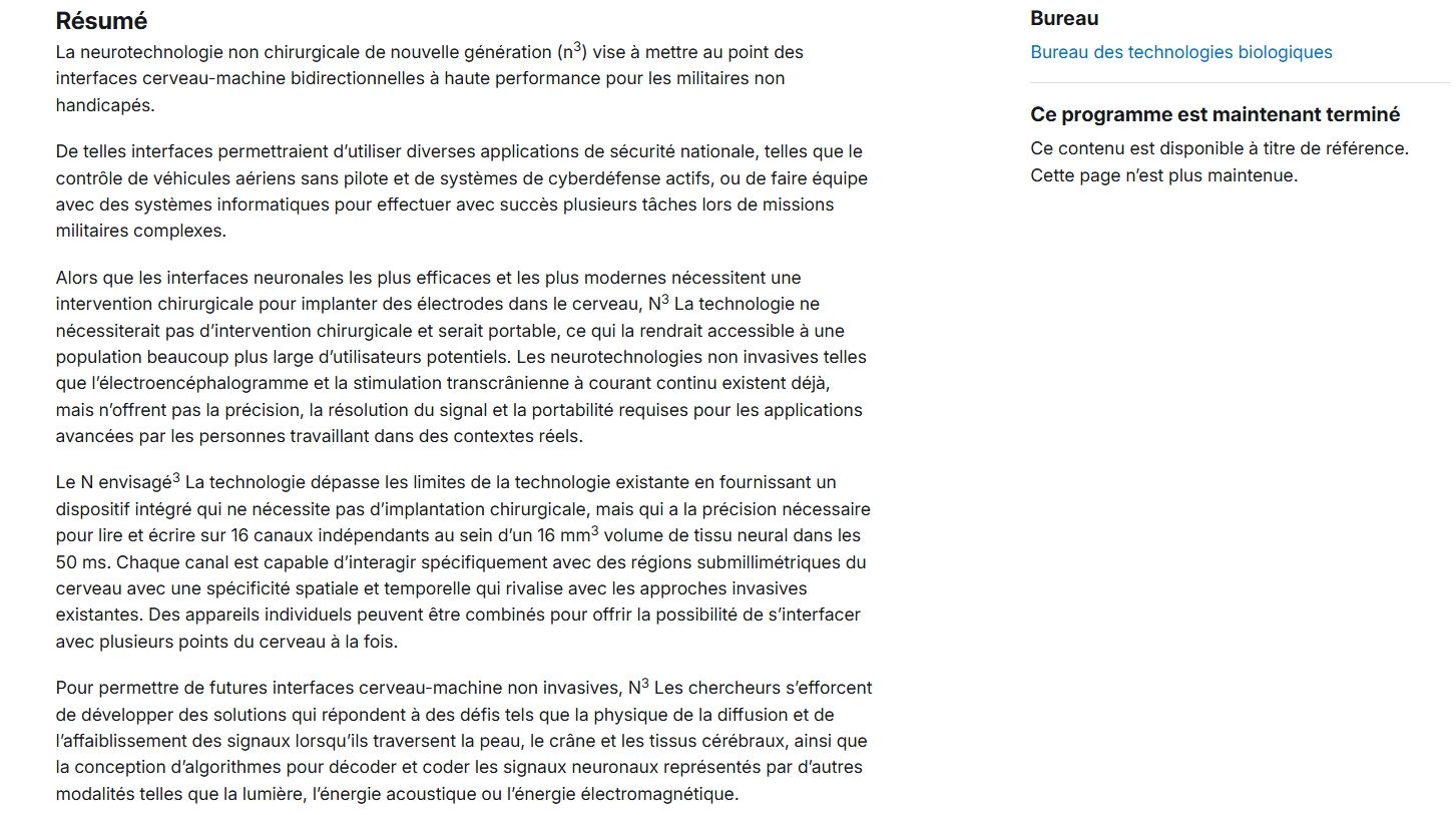 N3 : Neurotechnologie non chirurgicale de nouvelle génération | DARPA