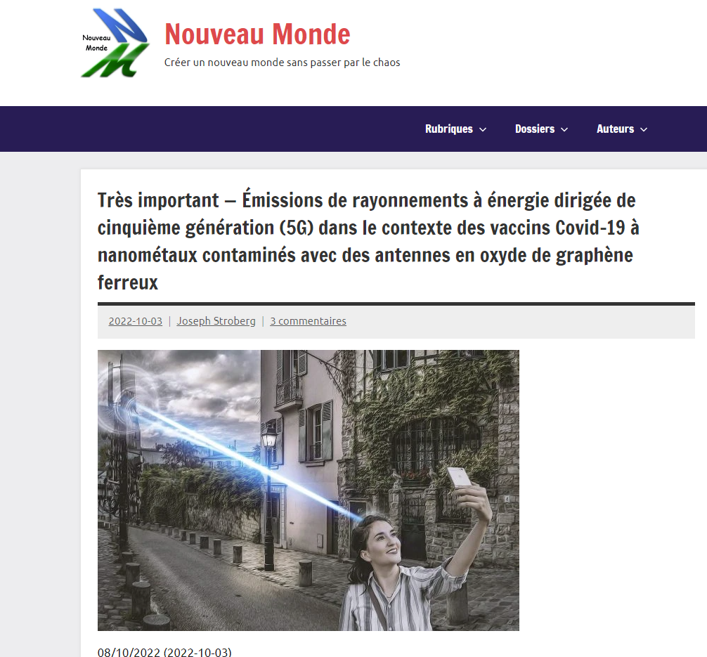 ..., ou armes d’information ; (ii) chemtrails ; (iii) systèmes d’armes à haute altitude à ultra basse fréquence ; (iv...