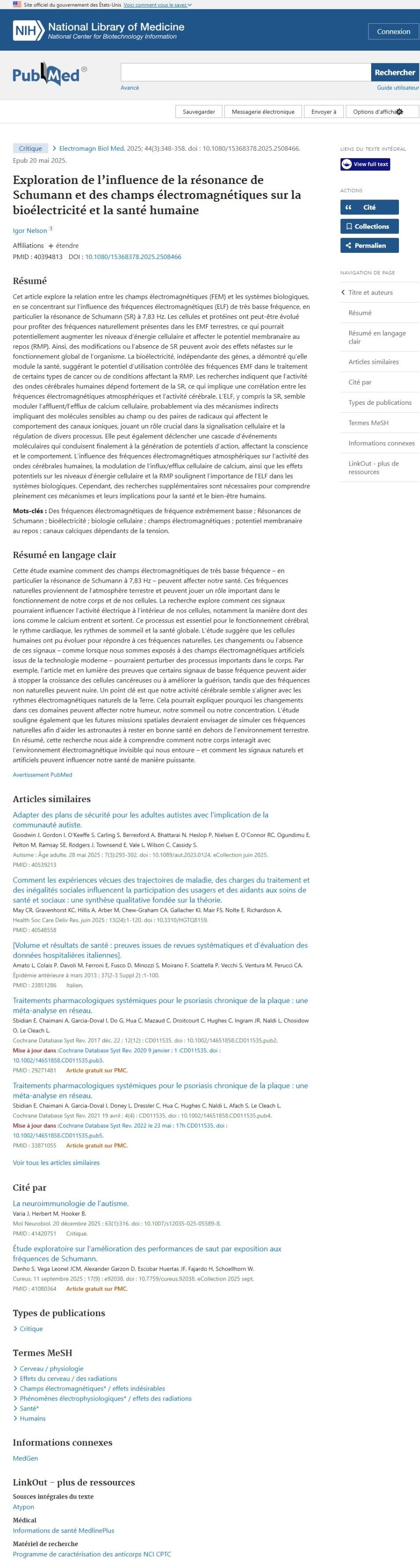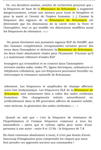 « Les fréquences ELF de la Résonance de Schumann (RS) sont intimement liées à celles des ondes cérébrales humaines Des changements induits naturellement ou artificiellement pourraient affecter de manière subtile, voire sérieuse, la génération des ondes cérébrales . » Claire Séverac.