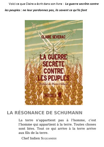 En 2015, dans son ouvrage « La Guerre secrète contre les peuples», Claire Séverac révélait l’existence d’un plan global visant à l’assujettissement de l’humanité par les ondes et la manipulation climatique. Elle nous avait prévenus : « ne leur pardonnez pas, ils savent ce qu'ils font ».