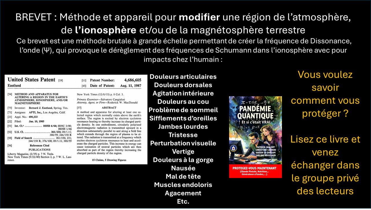 Ce livre apporte les preuves qui manquaient à Claire Séverac. Il explique comment la modification de la cavité ionosphérique brise littéralement la santé humaine.
