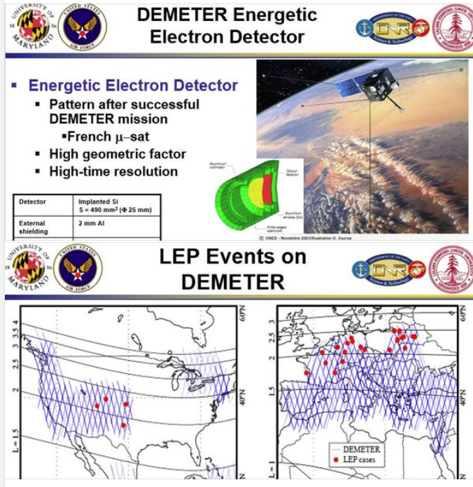 anomalie dans l'Atlantique détectée par Demeter ? Tout le monde savait (et sait) qui balancent des ondes ELF / VLF - Demeter du CNES les mesurait. Depuis, la mission de mesure a été abandonnée. L'Université de Stanford est dans le projet HAARP avec UCLA (Université de Californie), ou l'un des inventeurs du fameux brevet US 11, 801, 394, B1 est directeur de recherche.